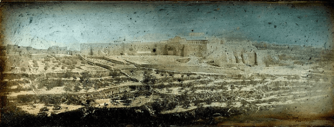 În 1844, Ierusalimul era un orășel de doar 15.000 de locuitori, aflat la periferia Imperiului otoman. Aceste imagini timpurii din Ierusalim au fost făcute în anul 1844 de fotograful francez Joseph-Philibert Girault de Prangey (1804 – 1892), căruia îi datorăm alte sute de imagini din regiunea Orientului Mijlociu.