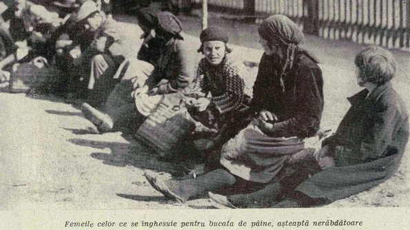 ”Insfârșit, de bine de rău, cei 500 de șomeri ai primăriei s’au adunat în sala cu zidurile netencuite, unde un domn econom, cu catastiful în față, împarte cele 500 de pâini rumene, așezate în spatele unei tejghele de lemn.