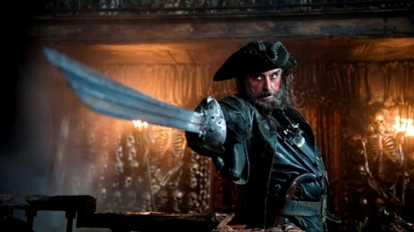 Liniştea oceanului este brusc tulburată de o cumplită lovitură de tun. O ambarcaţiune plină de mărfuri preţioase este cuprinsă de flăcări. Câţiva marinari dezorientaţi şi răniţi sunt înghiţiţi de apele răzvrătite. Pistoale furibunde răsună în toate părţile. Piraţii, avântându-se cu jind asupra corabiei lipsite de apărare, îşi flutură săbiile care încotro. Râzând zgomotos, căpitanul se aruncă şi el pe punte, scrutând împrejurimile. Înalt, implacabil şi crud, piratul cu pieptul acoperit de tot felul de cuţite şi pistoale le ordonă marinarilor să împrăştie teroarea. Înconjurat de un fum gros, înveşmântat în negru, cu fitile arzându-I în păr şi barbă, pare venit din haznaua iadului. Chipul său întunecă până şi cuibul de flame nestăvilite. Corabia se supune îndată. Barbă Neagră (Blackbeard) şi echipajul său au mai săvârşit o prădăciune.